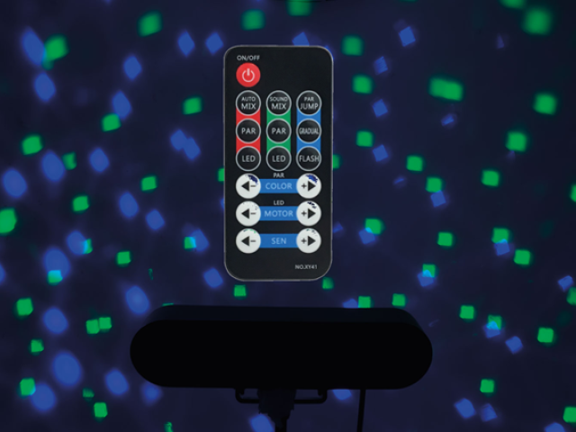 Easy to use with auto, sound activated or remote control operation Ideal for home parties